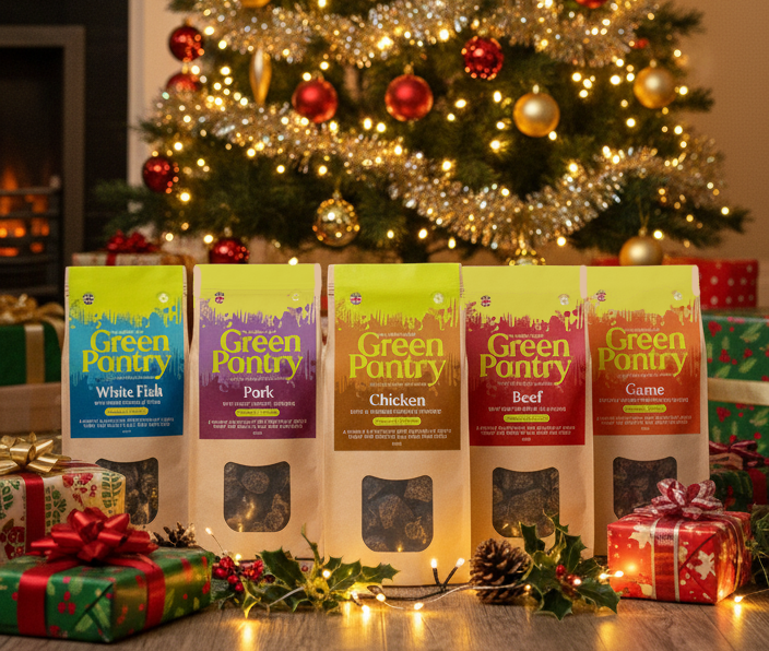 🎄 Green Pantry Festive Dog Treats – Turkey with Sweet Potato & Cranberry 🎄 Give your dog a joyful, healthy treat this festive season with Green Pantry’s low-fat, nutrient rich Turkey bites. Lovingly crafted to support both mental and physical well-being, these semi-moist treats are bursting with flavour and functional goodness.